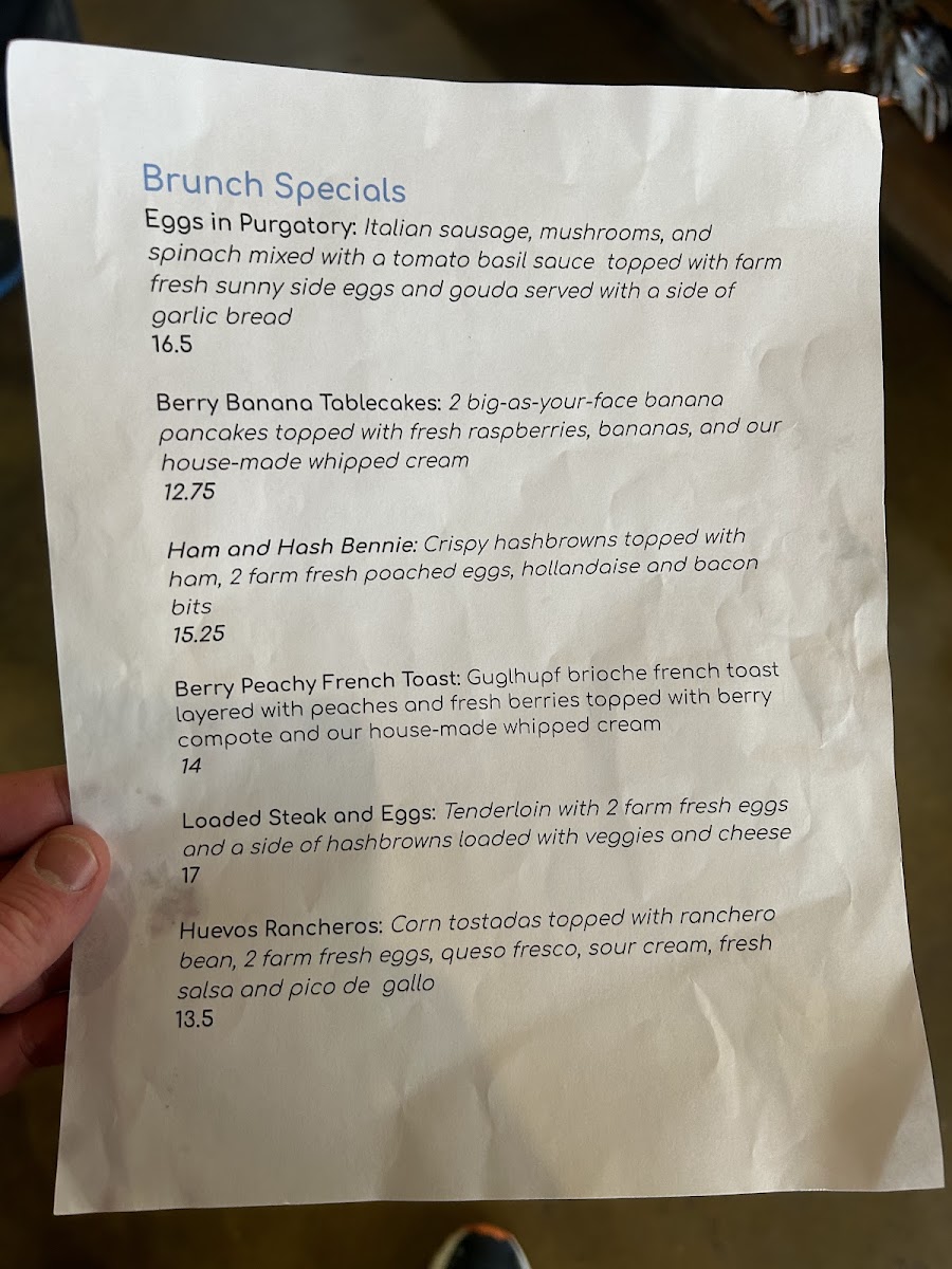 2 eggs, choice of protein, hashbrowns, one tablecake, and one slice of Guglhupf brioche French toast.