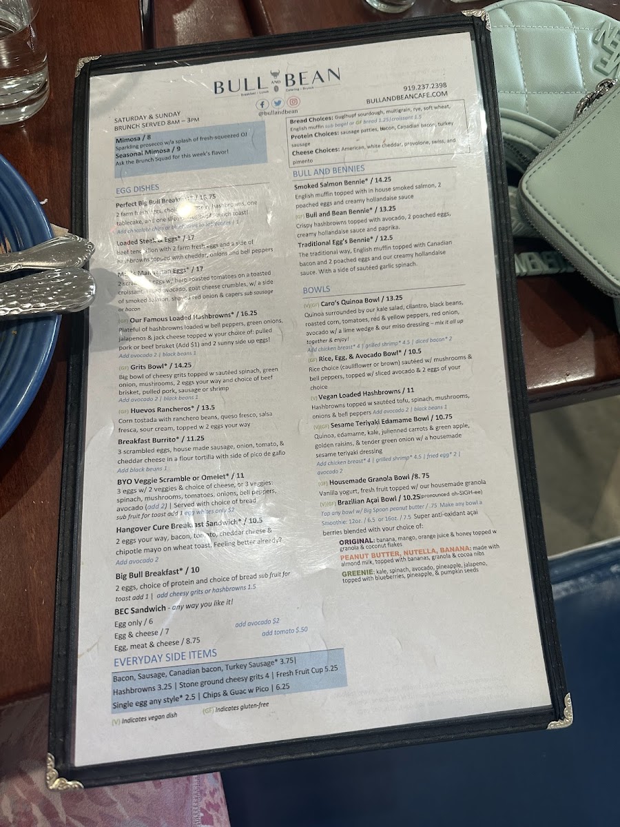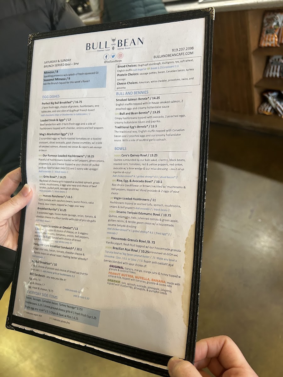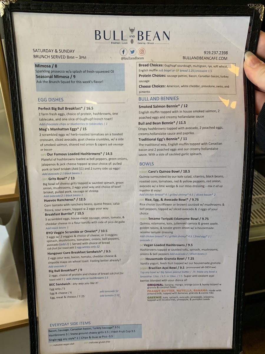 Big bowl of cheesy grits topped with sauteed spinach, green onion, mushrooms, 2 eggs your way and choice of beef brisket, pulled pork, sausage or shrimp.